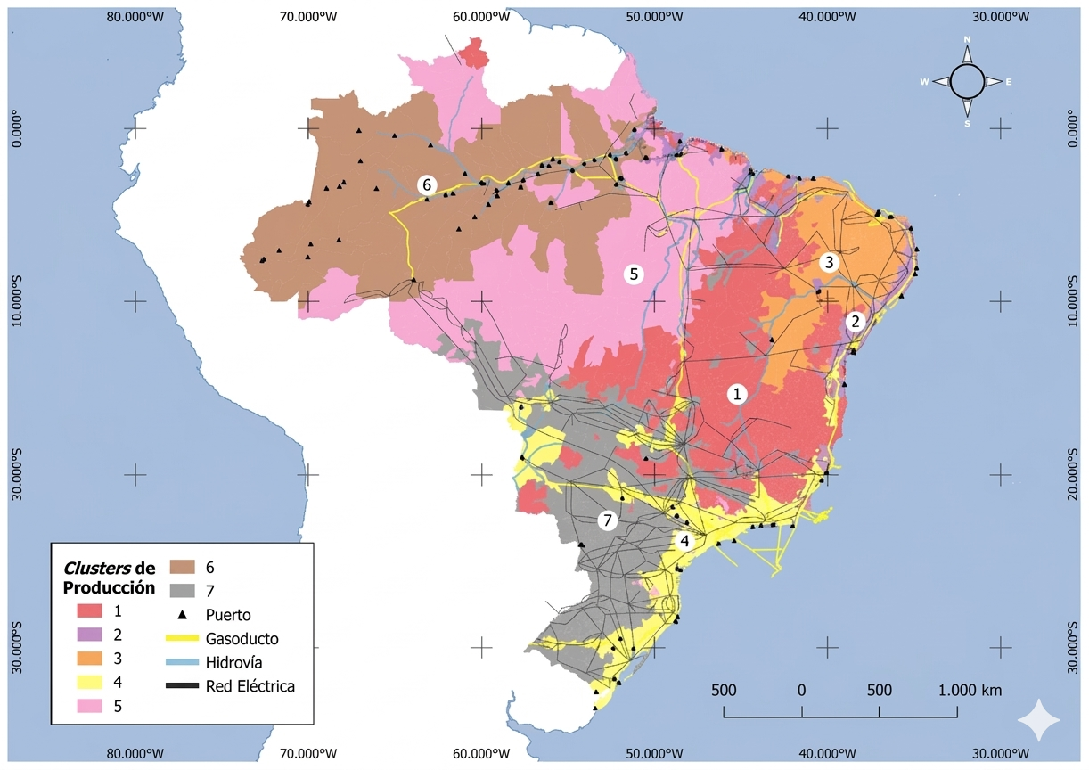 Análisis basado en datos municipales identifica siete clusters de producción y diez de consumo y señala la necesidad de infraestructura para conectar polos energéticos e industriales