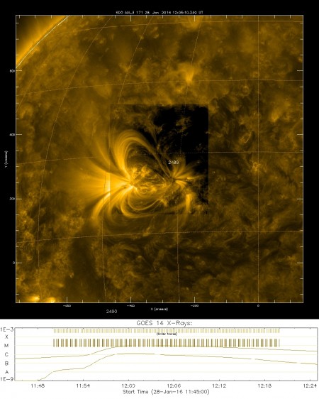 Simultaneous flares were observed at the same time on the same day as a brightening in the visible light spectrum (specifically the hydrogen-emission line known as H-alpha red light) by the HASTA Telescope, also located in Argentina, and in extreme ultraviolet (EUV) by NASA’s Solar Dynamics Observatory (SDO).