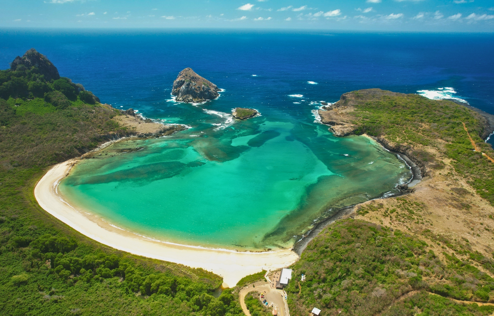 Con aguas rasas, cálidas y turbias, la Baía do Sueste es también un lugar de alimentación de tiburones tigre (Galeocerdo cuvier), al punto de que el baño y el buceo fueron prohibidos en 2022 tras accidentes con turistas.