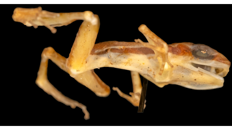 “O curador do museu onde o exemplar está depositado nos autorizou a retirar um pequeno pedaço de tecido para extração de DNA, mas não conseguimos encontrar material genético de sapo em quantidade suficiente, apenas contaminação de DNA humano e de bactérias”, conta.