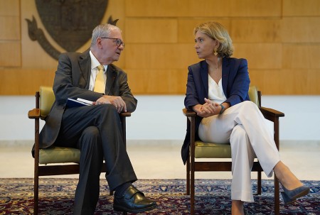 Marco Antonio Zago, presidente da FAPESP, e Valérie Pécresse, presidente da Região Île-de-France (foto: Daniel Antônio/Agência FAPESP)