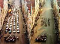Pesquisadores criam sistema on-line que permite participação da população na elaboração de planos de mobilidade para cidades médias. Na foto, comparação do espaço utilizado pelo mesmo número de motoristas e ciclistas (divulgação)