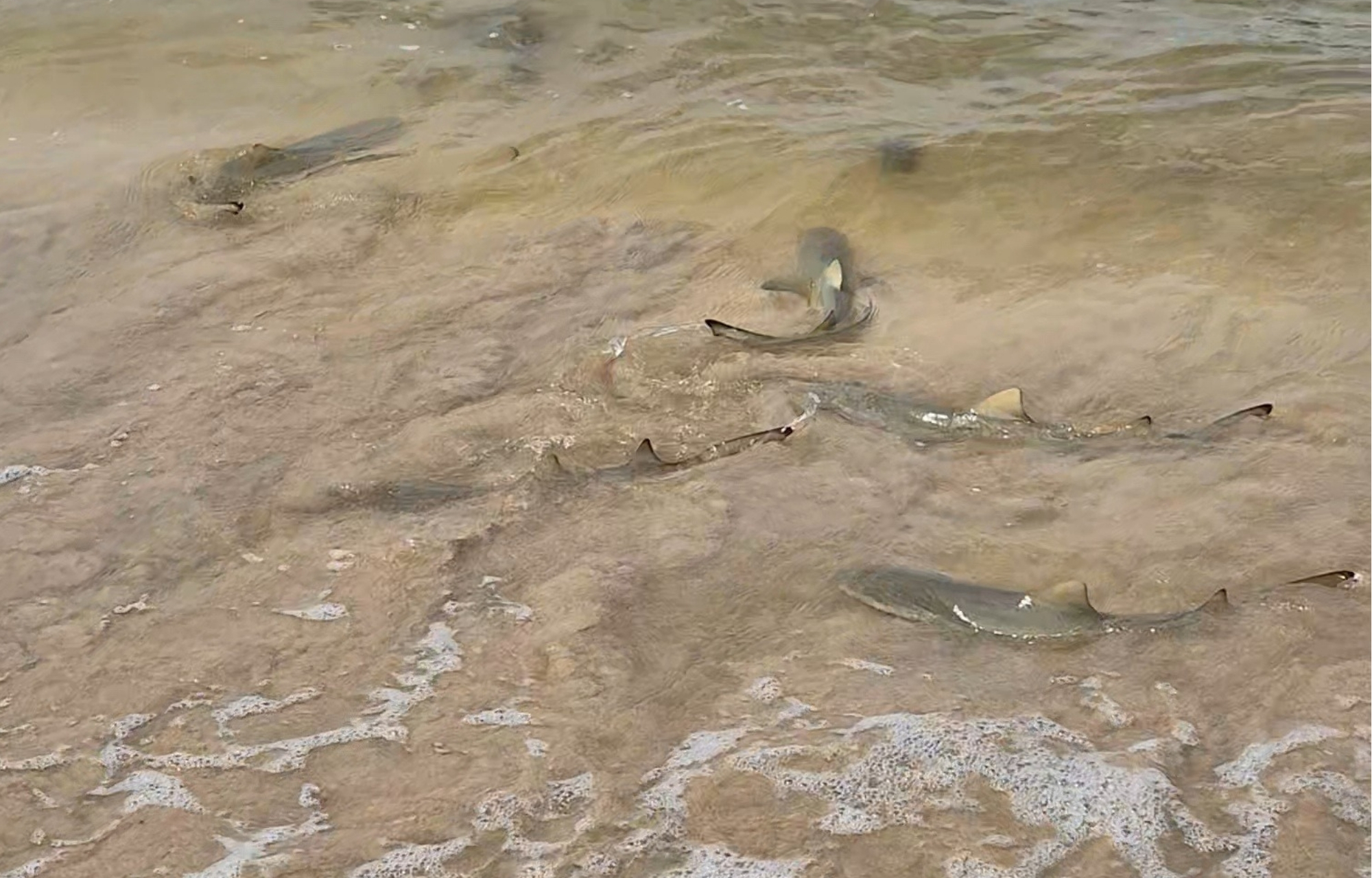 The authors believe that the sharks’ behavior is opportunistic because freshwater species are not part of their diet. However, it is unclear whether jaguar cichlids consistently enter Sueste Bay after heavy rains or if this was a one-time occurrence.