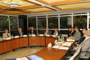 O presidente da FAPESP, Celso Lafer, expôs aos visitantes um histórico da Fundação, explicando alguns dos mecanismos adotados para o financiamento à pesquisa em São Paulo, além de um perfil das principais instituições de ensino e pesquisa localizadas no Estado.