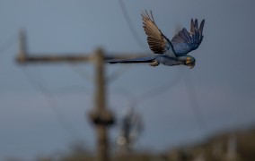 Arara-azul-de-lear, espécie do sertão baiano ameaçada de extinção, teve pelo menos 35 indivíduos mortos por eletrocussão em 2025. Troca de 10% dos postes de maior risco evitaria 80% das mortes