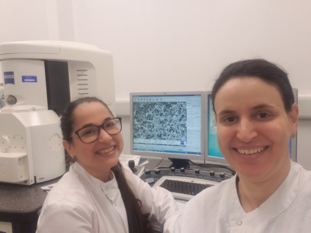 Luciana Solera Sales and Fernanda Brighenti at the Biochemical and Microbiological Research Laboratory at FOAr-UNESP (photo: researchers’ archive)