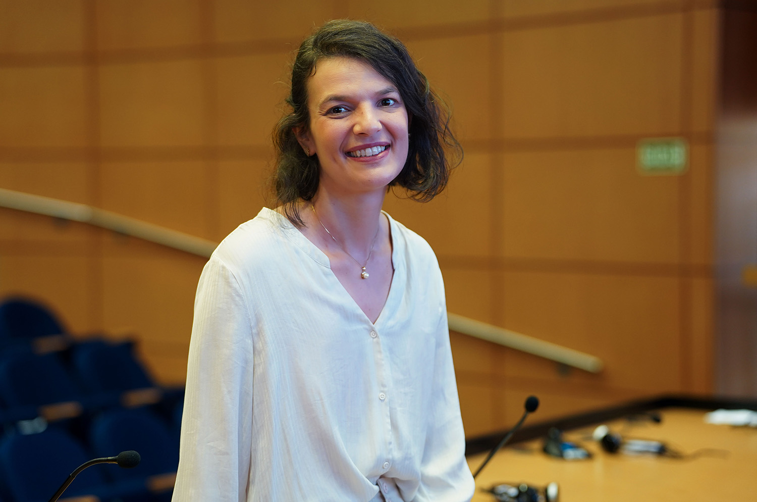 Gabriela Prestes Carneiro, pesquisadora do Museu Nacional de História Natural da França, durante o Fórum Brasil-França, na FAPESP: sambaquis são locais de memória que foram visitados, reconstruídos e reocupados desde cerca de 3 mil anos atrás (foto: Daniel Antônio/Agência FAPESP)