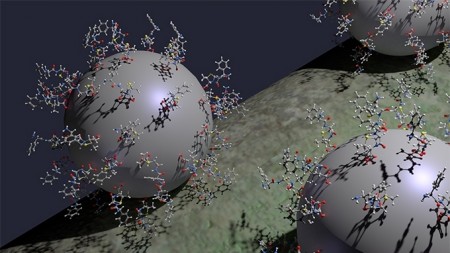 “Mediante modelado molecular, logramos determinar qué parte de la molécula de ampicilina interactúa mejor con la membrana bacteriana. Dejamos entonces a todas las moléculas del fármaco con esa parte clave orientada hacia el lado externo de la nanopartícula, aumentando así las posibilidades de interacción con el patógeno”, explicó.